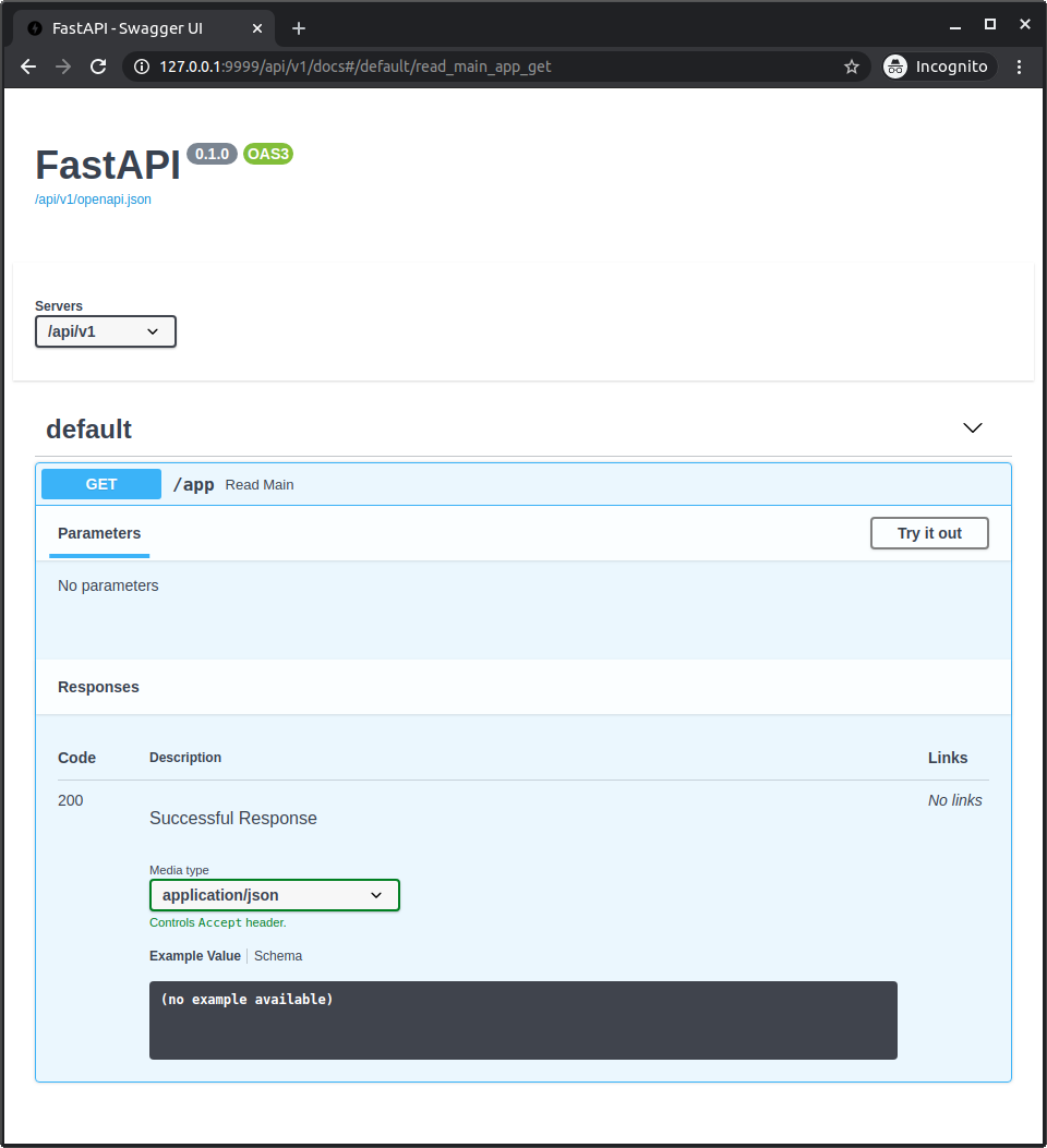 В интерфейсе документации по адресу http://127.0.0.1:9999/api/v1/docs это будет выглядеть так: