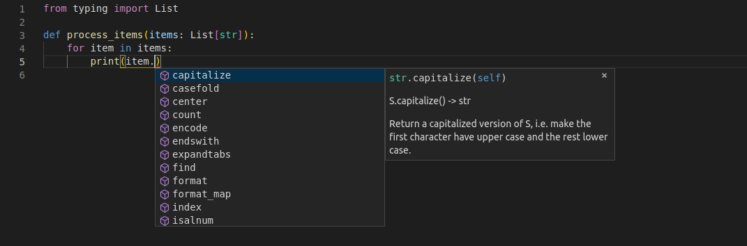 Тот факт, что это стандартный Python, означает, что вы по-прежнему получите лучший возможный разработческий опыт в вашем редакторе кода, с инструментами для анализа и рефакторинга кода и т.д. ✨