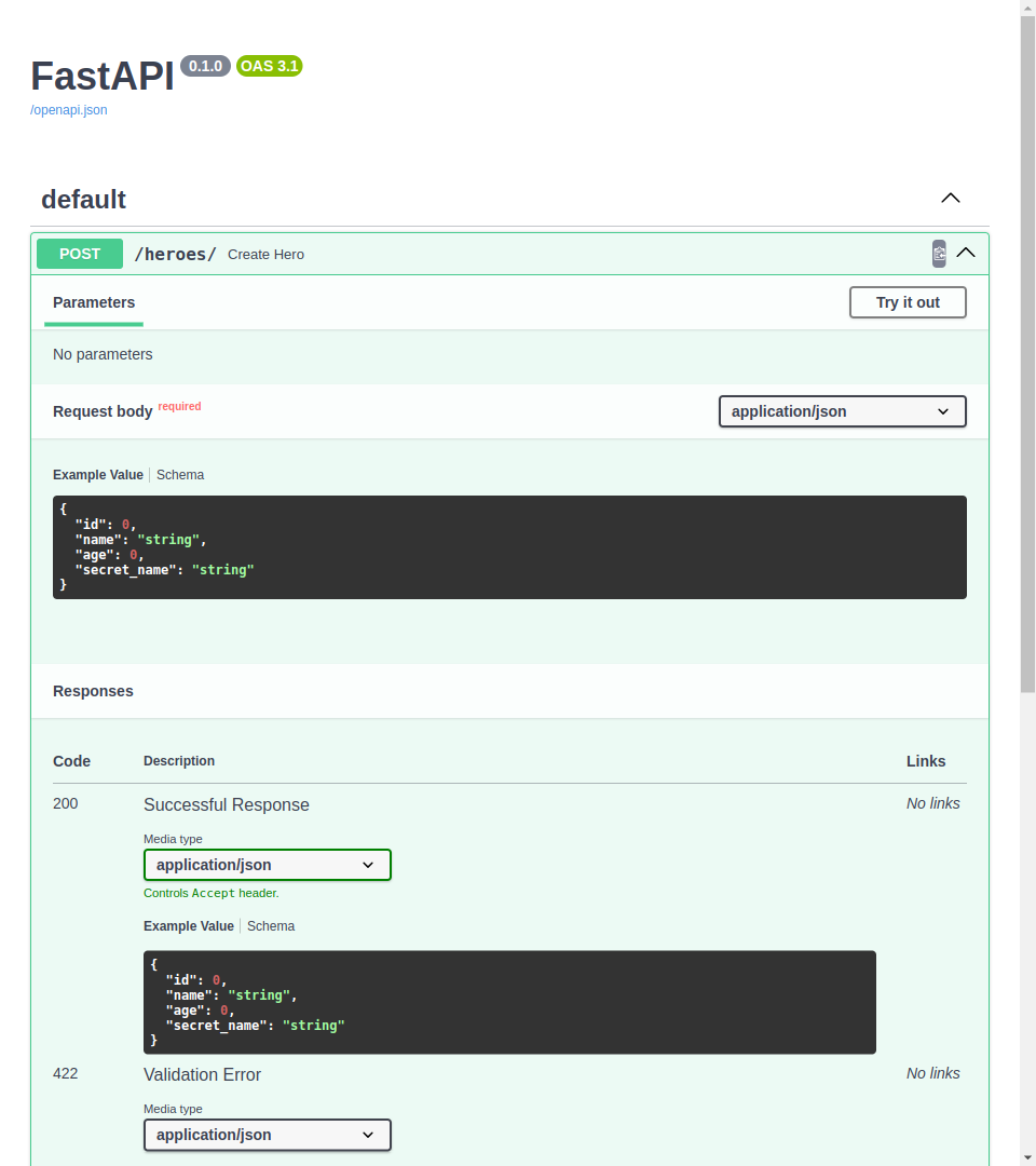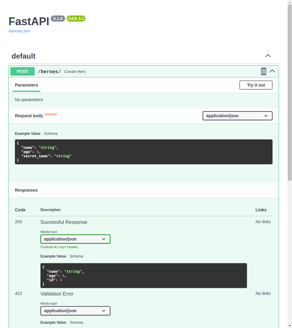 Сначала мы создадим самую простую первую версию приложения с одной моделью SQLModel.